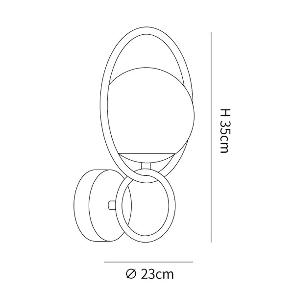 美しく作られたサークル グローバル ウォール ランプは、どんな空間にもぴったりです。見事なゴールドのメタルフレームと乳白色のガラスのランプシェードが、インテリアにエレガントなタッチを加えます。洗練されたモダンなデザインのこのランプは、間違いなく存在感を主張します。
