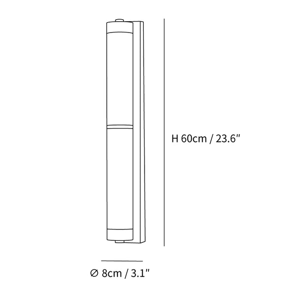 モデル A サイズ: ∅ 8cm x H 60cm / ∅ 3.1 インチ x H 23.6 インチ
