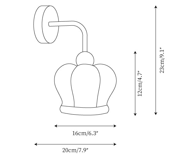 クラウン ウォール ランプは、どんな部屋にも柔らかな雰囲気の照明を提供します。ユニークな曲線デザインが魅力的で人目を引く目玉を作り出します。スタイリッシュな金属構造とガラスのランプシェードを備えたクラウン ウォール ライトは、どんな部屋にも暖かさと照明を加えるのに最適です。