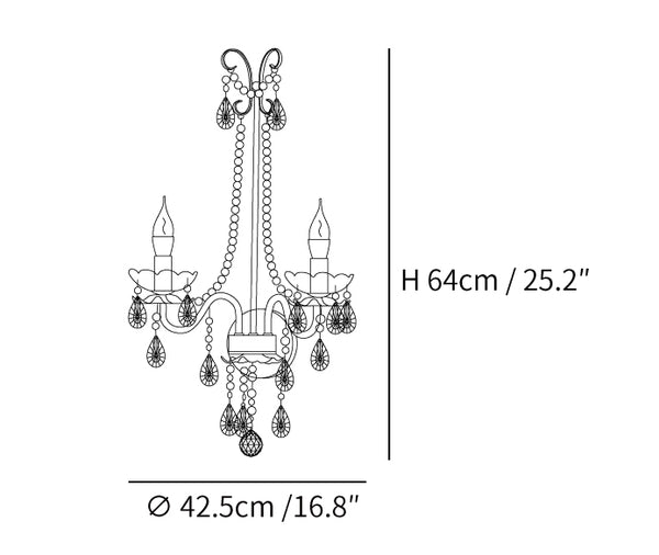 このクリスタル パール チェーン ウォール ランプは、洗練されたディテールでクラシックなフランスの雰囲気を醸し出します。高級感のあるクリスタル素材を使用しており、廊下、寝室、リビングルーム、階段のアクセントに最適です。
