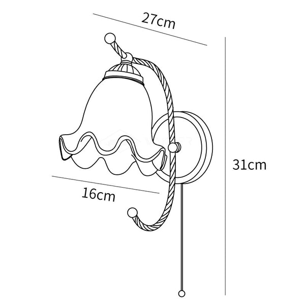 真鍮製の壁取り付け用燭台のランプホルダーとグースネックは真鍮仕上げで、インテリアを華やかな輝きで彩ります。光透過率に優れた不純物を含まない不透明ガラスで作られた花のガラスシェードは、バニティライトをエレガントなスタイルで引き立てます。