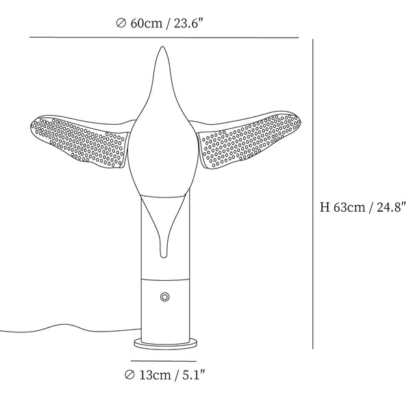 ファイヤーダンサーテーブルランプで空間を照らしましょう。木と金属で作られたこのランプは、高級感を与えるだけでなく、魔法の感覚も呼び起こします。繊細なアクリルのシェードと自立した姿勢が、森の中の魅惑的なホタルを彷彿とさせる、清らかな光と影で踊ります。このランプであなたの家に驚きをもたらしましょう。