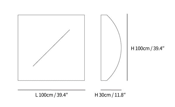 正方形サイズ: 長さ100cm x 高さ100cm / 長さ39.4インチ x 高さ39.4インチ