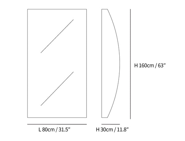 長方形サイズ: 長さ80cm x 高さ160cm / 長さ31.5インチ x 高さ63インチ