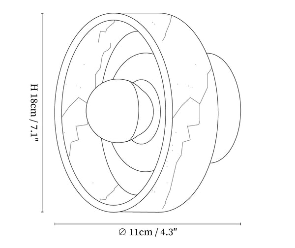 マーブル オーラ ウォール ランプのご紹介 - 微妙なシンプルさの傑作です。正確にカットされた薄い大理石が光源を包み込み、柔らかくも鮮やかな同心円のオーラを生み出します。付属のLEDライトは独特の鏡面ゴールドの色合いを誇り、浮遊する金色の球体の錯覚を呼び起こします。もともとキッチンとバスルーム用にデザインされたこの石造りの壁ランプは、あらゆる生活空間に洗練されたタッチを加えます。